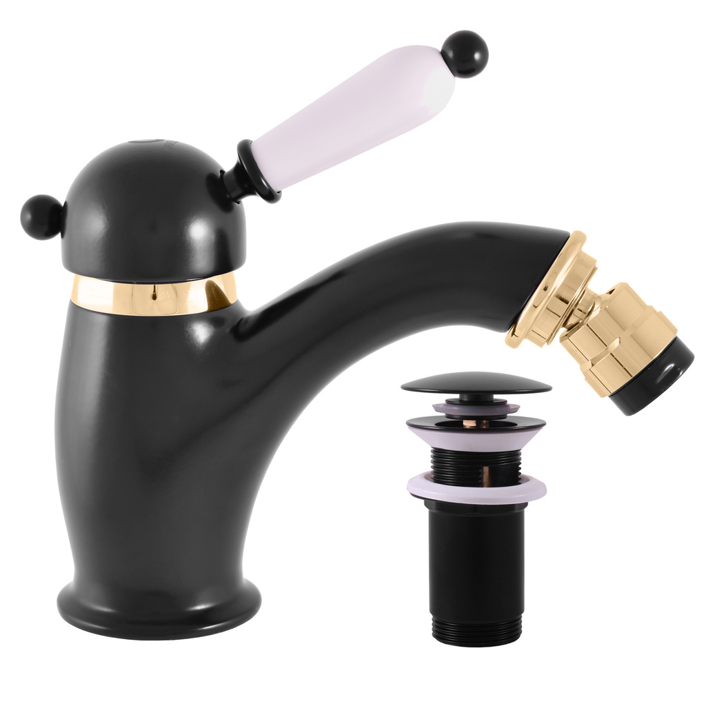 LABE BLACK MATT/GOLD Bidet lever mixer with pop-up waste L545.5KCMATZ